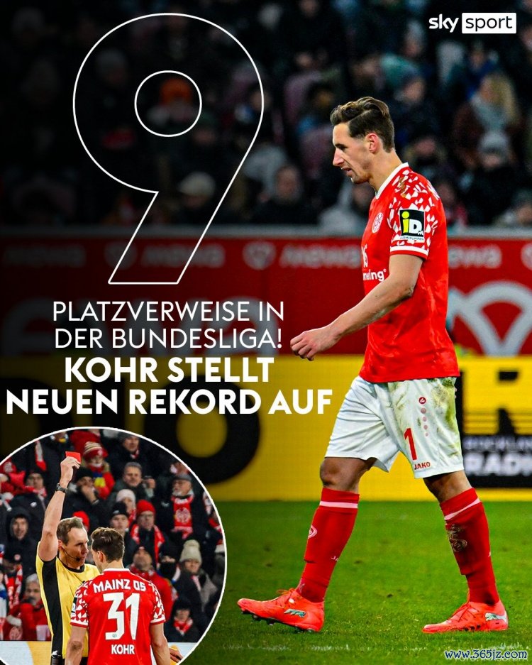 据德国天外体育统计,多米尼克·科尔于今在德甲比赛中领到9张红牌,成为德甲历史染红次数最多的球员。