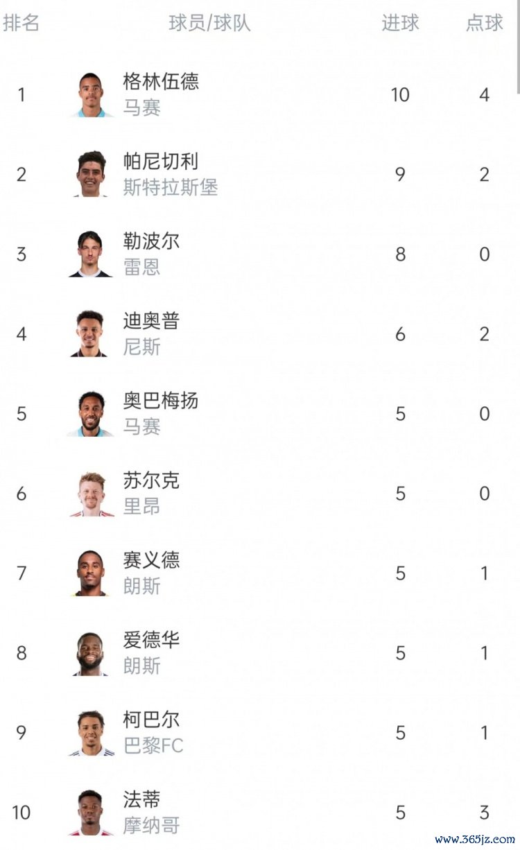 格林伍德本赛季出战12场法甲比赛,打进10球,登顶法甲弓手榜。