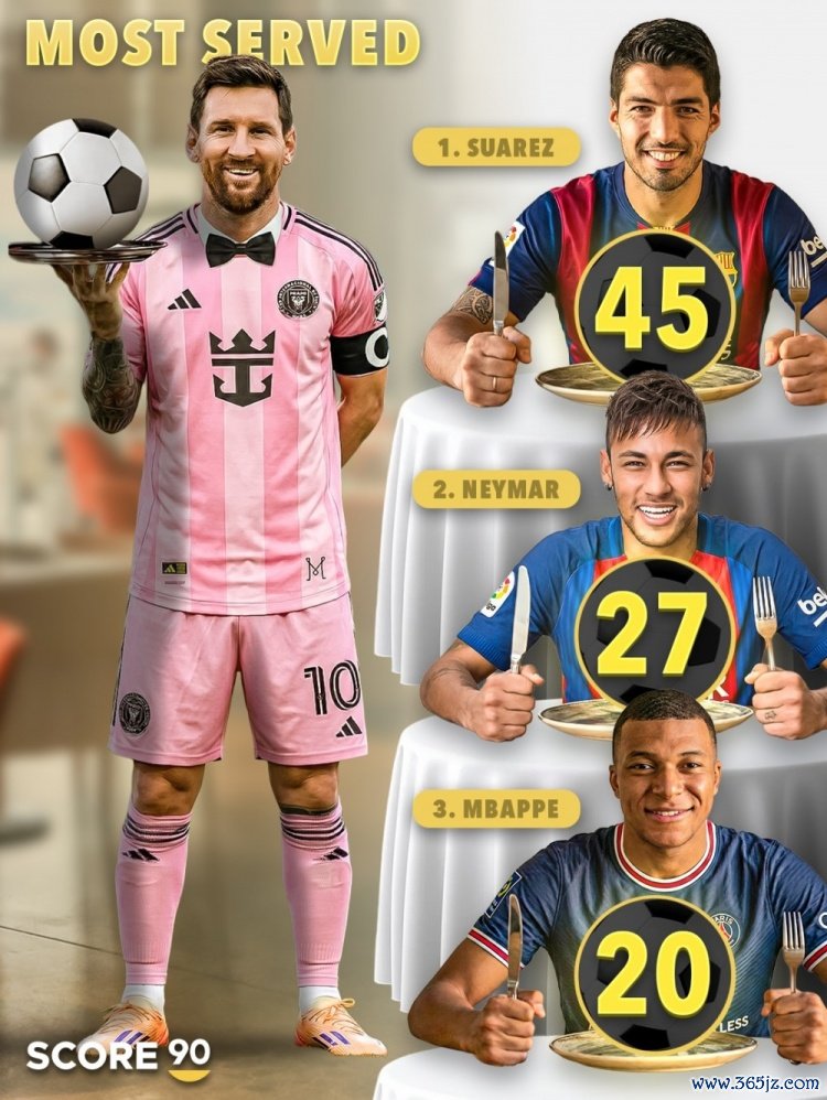 11月24日讯 好意思职联比赛,梅西1射3助引导迈阿密4-0完胜辛辛那提,晋级东部决赛。至此,梅西已办事糊口助攻数已达404次。据score90数据统计,在梅西404次助攻中,最大的受益者是苏亚雷斯45次。