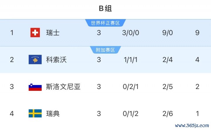 瑞典三场不堪暂以1分垫底,过时榜首瑞士8分。据We Global Football统计,瑞典平直晋级全国杯概率只消1%,但附加赛概率有99%。