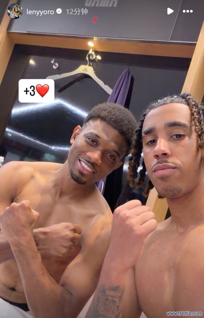约罗也在赛后通过社媒晒出我方和阿玛德在赛后更衣室赤裸上半身的自拍照,两东说念主看起来齐畸形欣忭,约罗还配文说念:“+3分”。
