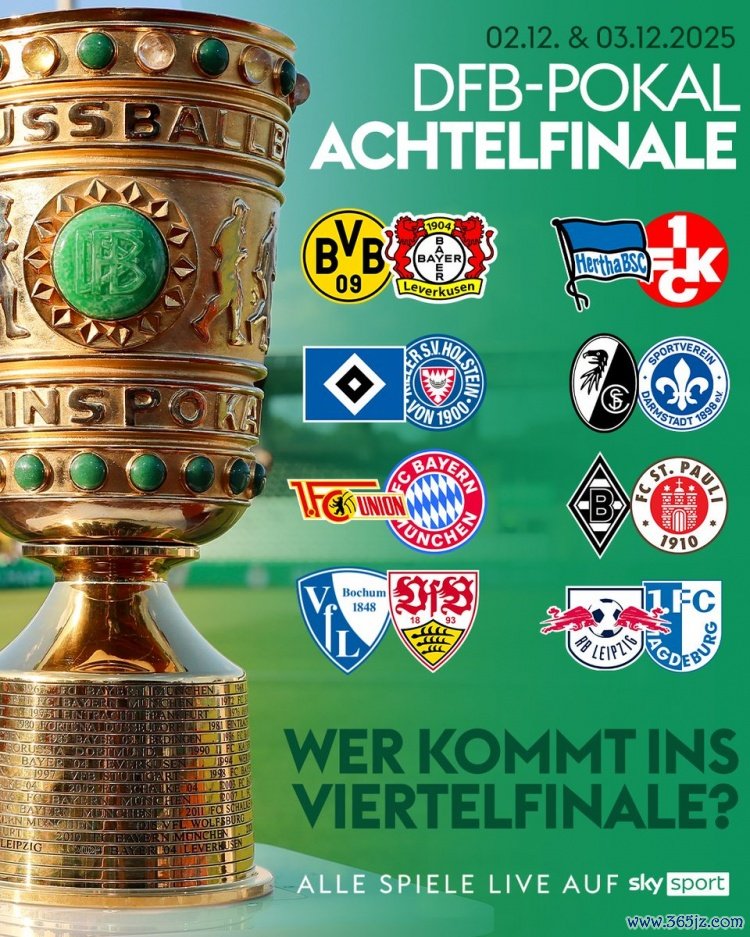 德国杯1/8决赛对阵:多特vs勒沃库森,柏林齐集vs拜仁