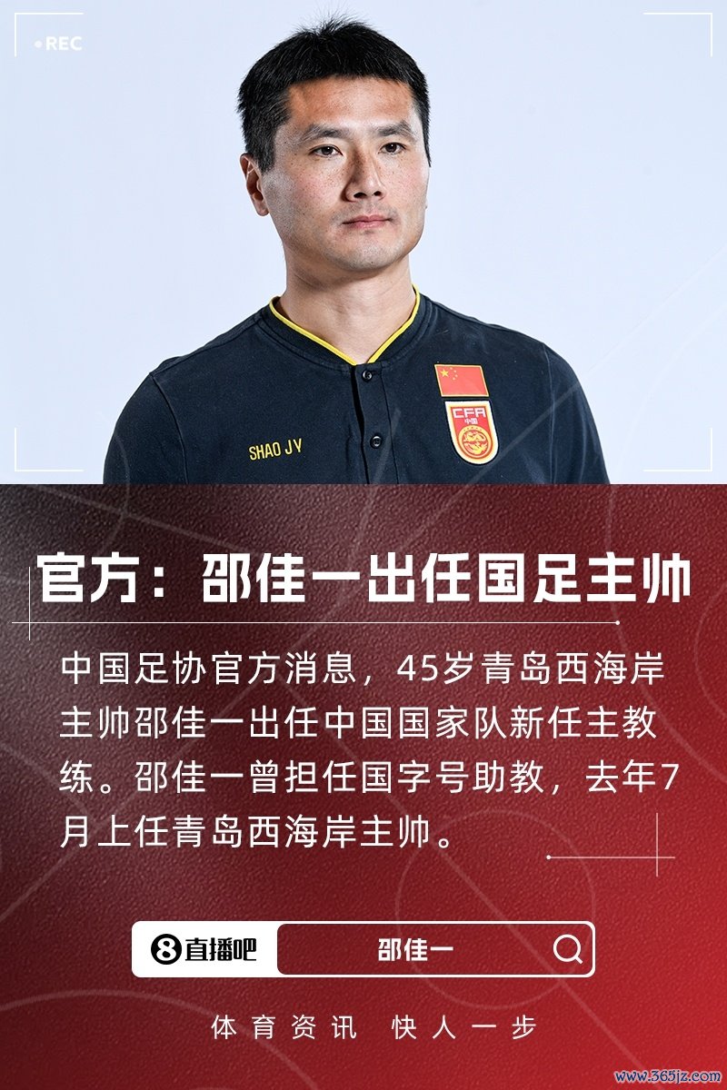 11月05日讯 据中国足协官方音书,45岁青岛西海岸主帅邵佳一出任中国国度队新任主帅,媒体东谈主杜金城对此次任命进行了分析。