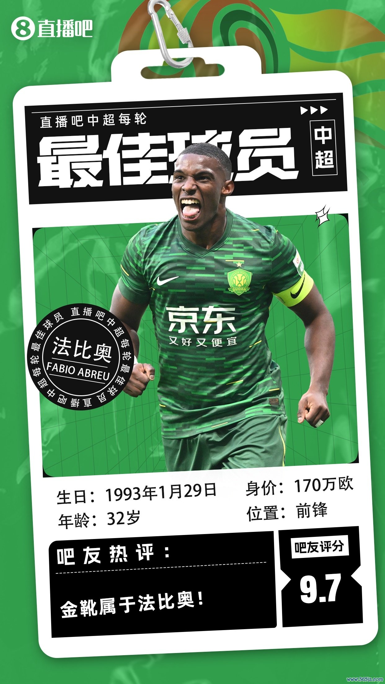 为什么莫得评比?就奏凯当选,因为法比奥大四喜夺得联赛金靴!
