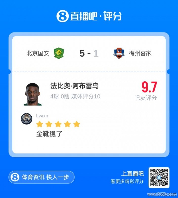 中超收官战,法比奥演出大四喜,匡助北京国安主场5-1大捷梅州客家,个东谈主也以30场28球成为本赛季中超金靴,本轮最好实至名归!