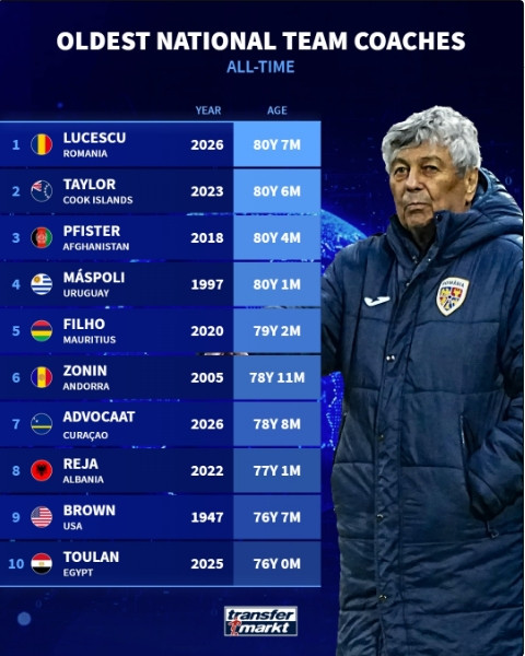 1.卢塞斯库(罗马尼亚)执教国家队年份202680岁7个月