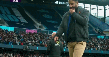 在哈兰德进球之后,瓜迪奥拉荒诞庆祝,阿莫林则连连摇头。