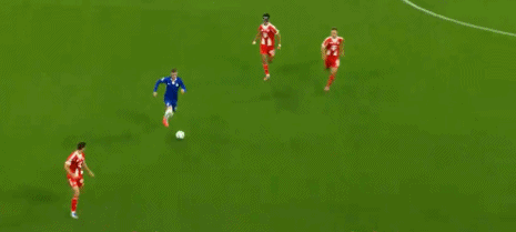 2分钟后,赫拉芬贝赫直塞作念球,萨拉赫对抗3名马竞球员厚重推射到手。