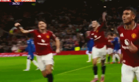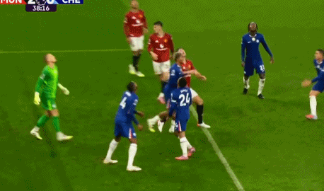 第36分钟,里斯-詹姆斯突围邪恶,卢克肖头球摆渡,卡塞米罗近距离头球冲顶破门。进球之后,卡塞米罗滑跪庆祝。