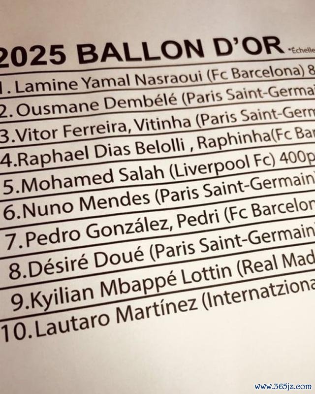 当今,网上已流出一份2025金球奖名次名单,力压登贝莱获奖。