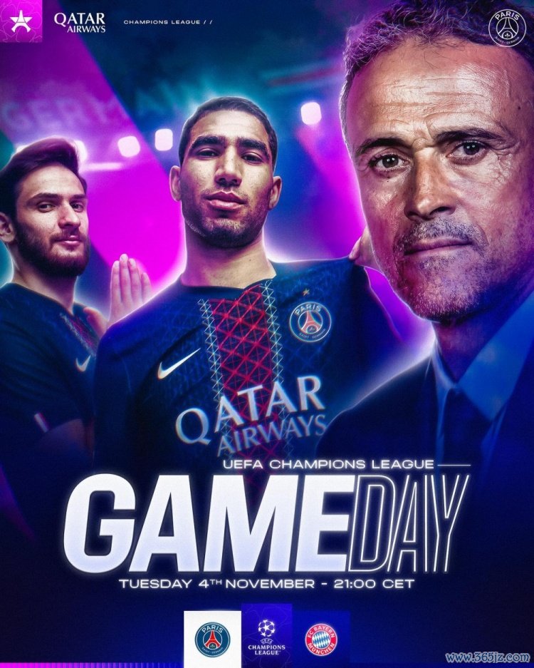巴黎发布欧冠对阵拜仁海报:恩里克、阿什拉夫、K77出镜