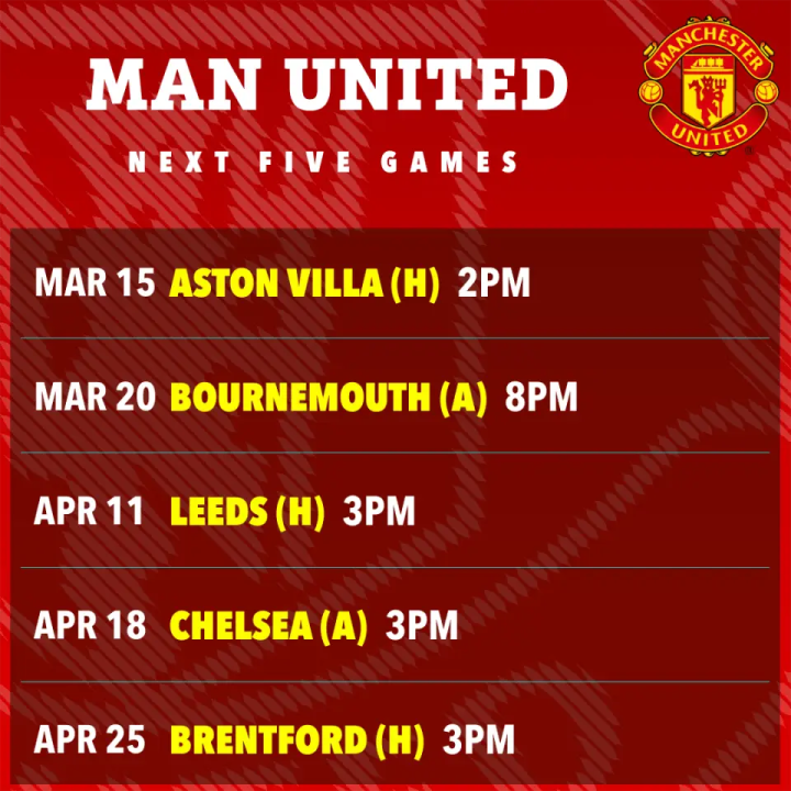 虽然马奎尔和卢克·肖有可能参加比赛,但曼联在伤病方面还是有不小的压力。利桑德罗·马丁内斯(简称利马)和梅森·芒特大概率不能复出,利马因为小腿受伤,已经缺席了最近两场比赛,芒特则是因为训练时受伤,缺席了5场。千嗨体育一直关注曼联的伤病情况,听说,中卫德里赫特因为背部受伤,从去年11月底就一直没法上场,帕特里克·多古要到4月中旬才能回到赛场。